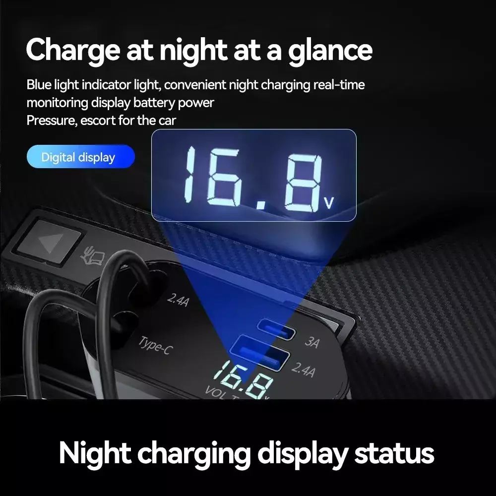· Projeto 4 em 1: Este versátil carregador de carro combina quatro funções em um dispositivo, incluindo um cabo retrátil, recursos de carregamento rápido e compatibilidade com vários dispositivos móveis.